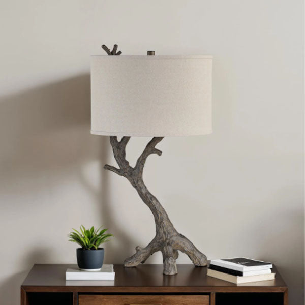 Break away from the ordinary and let this table lamp leave a lasting impression on your design project. Inspired by nature, its tree-shaped resin body, finished in painted dark brown, creates a striking focal point. The oatmeal linen drum shade softens the light, adding warmth and balance to the bold design. Featuring a 3-way switch for adjustable brightness, this lamp is perfect for any setting. Please note that the bulb is not included, and colors may vary. Place one or more in your space and prepare for endless compliments.