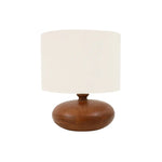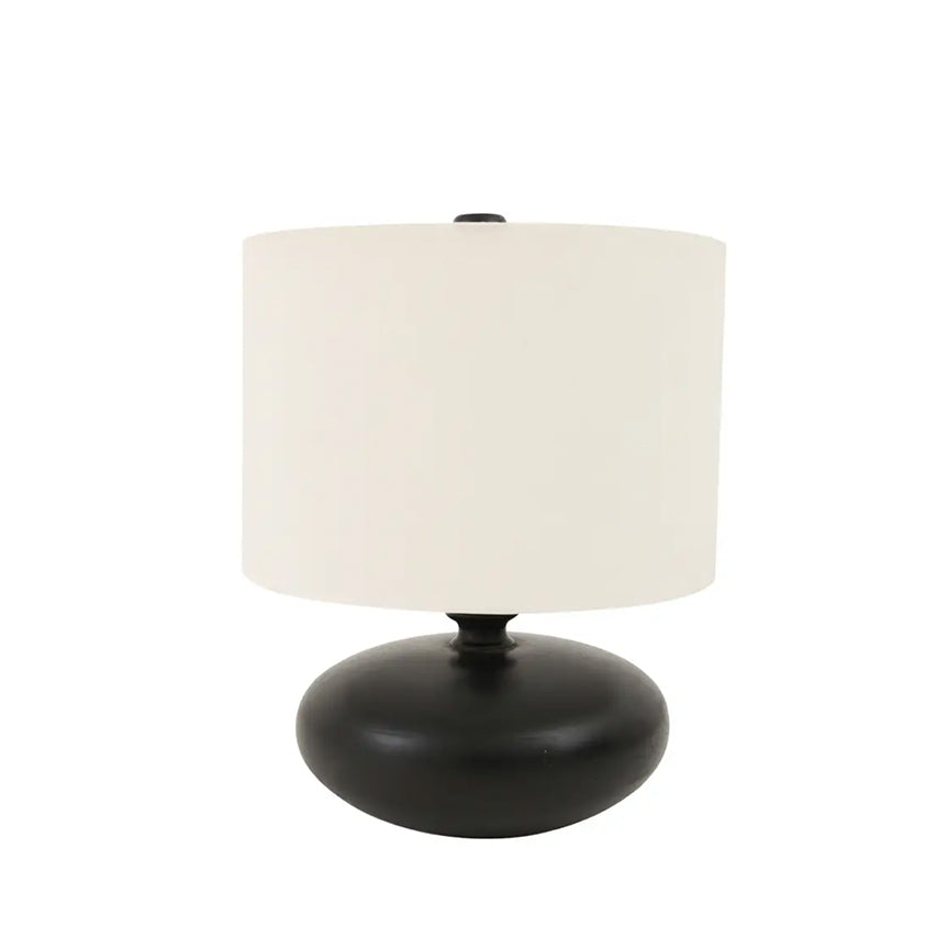The Evie table lamp showcases vintage craftsmanship with its black-finished mango wood base, elegantly shaped into a spherical form. Complemented by a textured cotton shade that adds dimension, this lamp is made from sustainably sourced mango wood from trees that no longer produce fruit, enhancing its heirloom appeal.