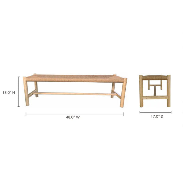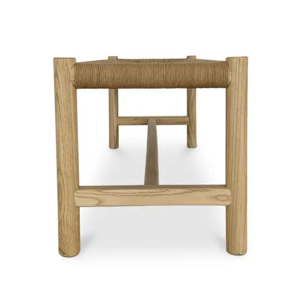 The Hawthorn Bench combines practicality with artisanal charm, making it a versatile piece for any space. Its woven natural fiber seat adds texture and warmth, perfectly complemented by a sturdy solid elm frame. The natural tones of the rope and wood create a harmonious balance, allowing the bench to shine as a functional yet stylish accent. Whether placed in a living room, entryway, or at the foot of a bed, the Hawthorn Bench brings a sense of connection and understated elegance. It arrives fully assembled and ready to enhance your home.