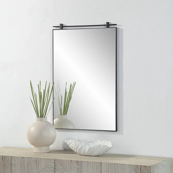 Enhance your living space with the sleek and stylish 36" tall rectangular mirror. Its clean, rectangular shape exudes modern charm, making it a perfect addition to any room. The mirror features a high-quality iron frame with a powder-coated matte black finish, ensuring durability and a sophisticated look. Designed for vertical hanging, it comes equipped with a D-Ring hanging system for easy installation. This mirror not only adds visual appeal but also serves as a functional piece that will brighten up any space. Its attention to detail and high-quality construction ensure that it remains a standout feature in your home