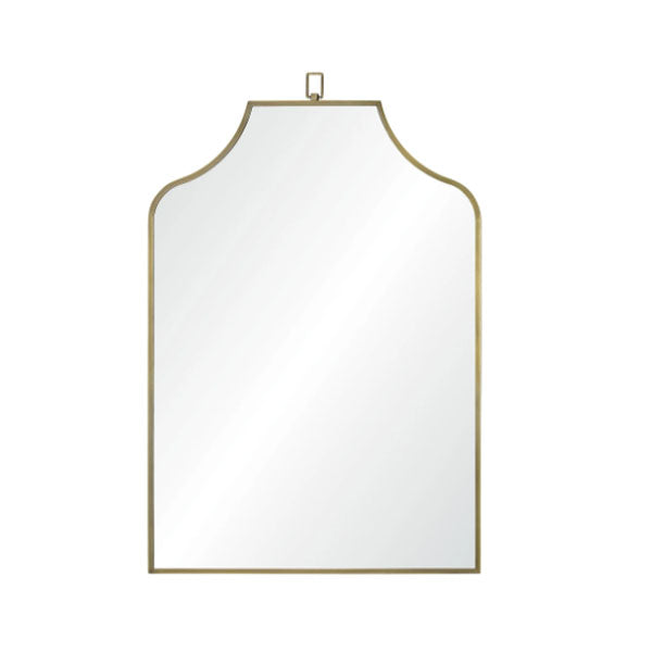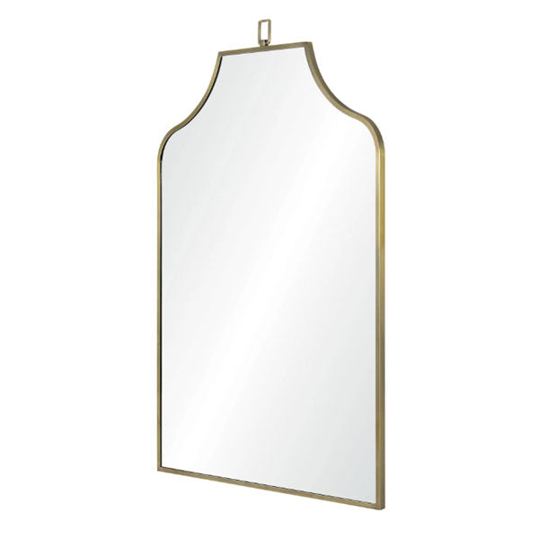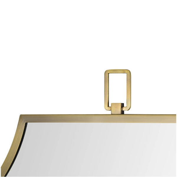 Elevate your interior with this wall-mounted mirror, featuring an iron frame finished in plated antique brushed brass. Its distinctive shape and decorative hook add historical charm, while the vertical hanging design enhances its elegance. This mirror not only reflects light to create depth but also serves as a captivating focal point, enriching the aesthetic of any room.
