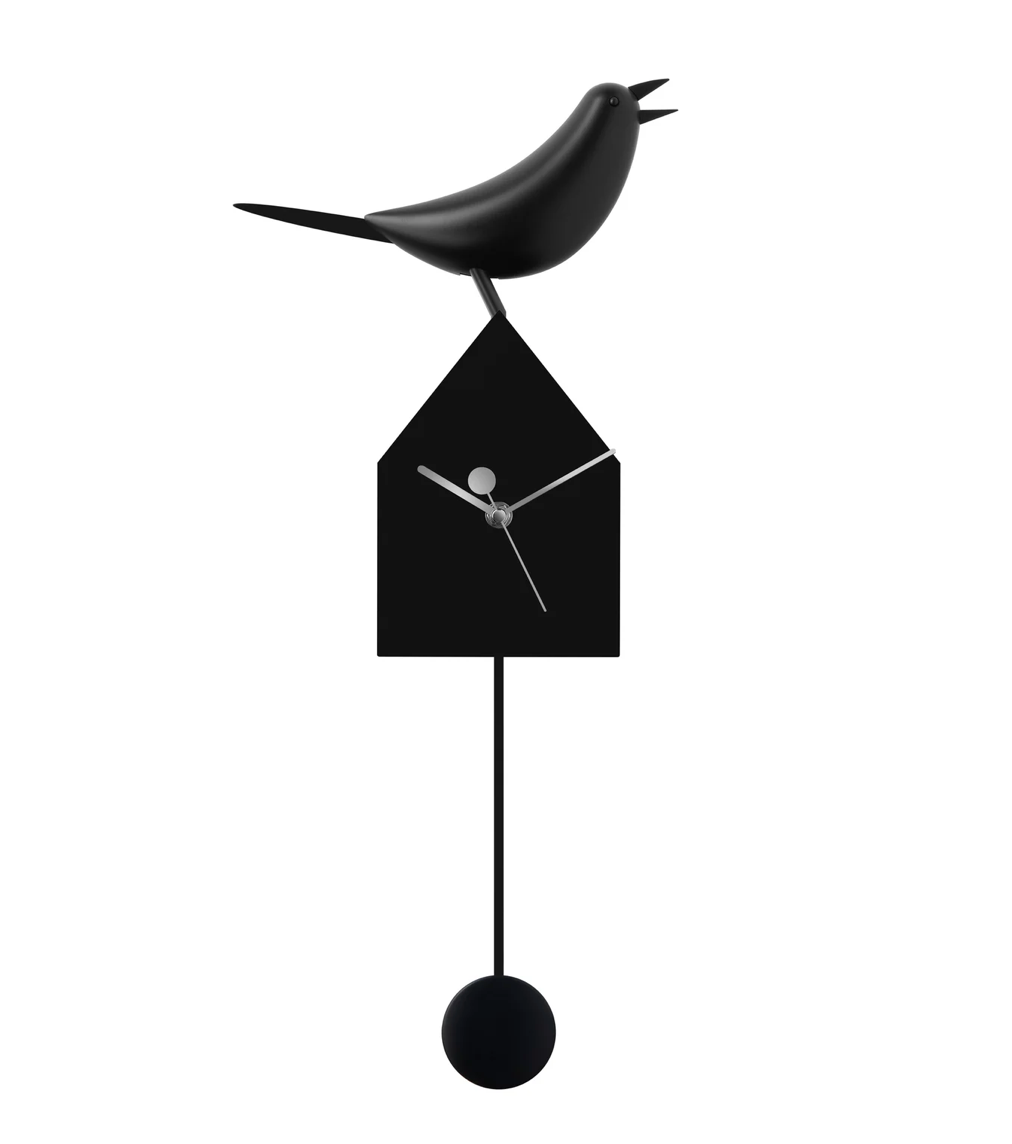 A charming addition to any space, the swinging pendulum of this clock moves in time with the birds beak and tail. The pendulum can be removed to use the clock on a table or shelf. Metal and plastic. Gift boxed.