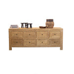 Crafted from reclaimed elm, this piece highlights the wood's natural variations, creating a unique visual appeal that tells a story. With eight spacious drawers, it offers generous storage while maintaining a sleek and organized look. The rich textures and warm tones of the wood are beautifully complemented by clean lines and a minimalist silhouette, making it a versatile addition to any space—be it an entryway, living room, or bedroom. This console not only serves as a functional storage solution but also as a timeless statement piece that enhances the aesthetic of your home.