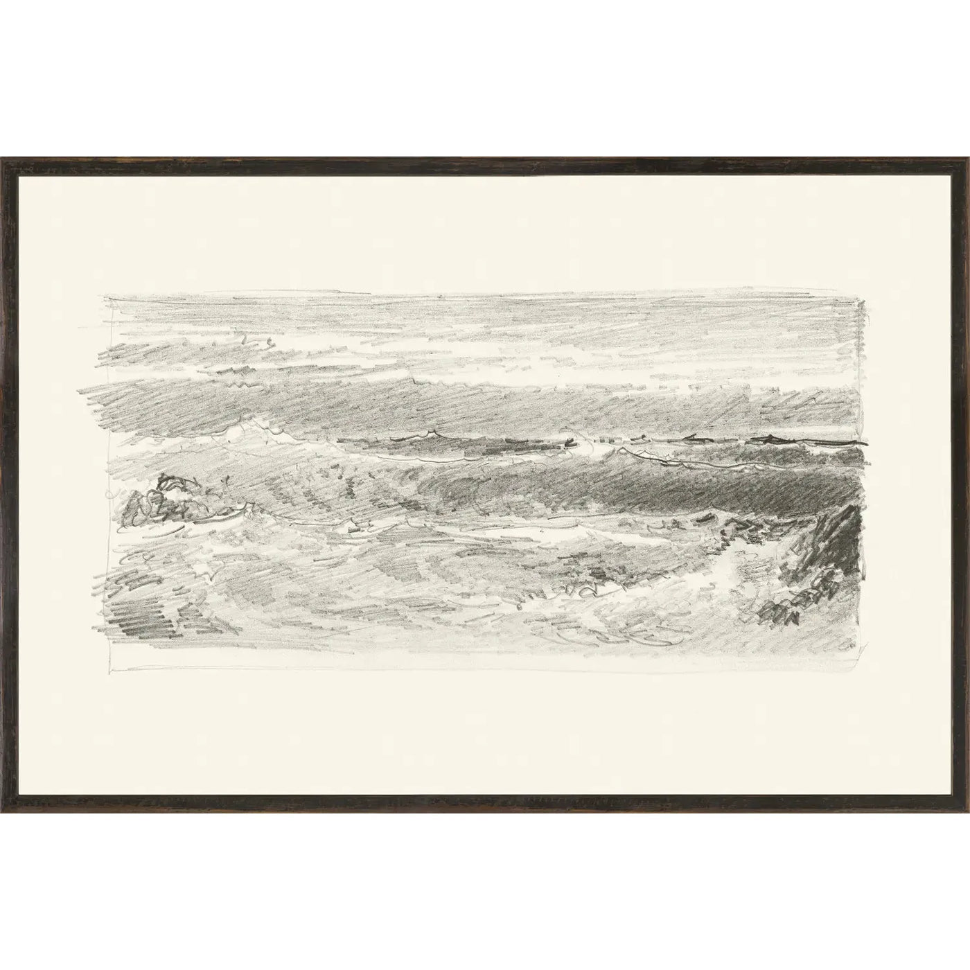 A handsome graphite drawing by William Trost Richards. Each of these seascapes would have been sketchbook drawings for Richards exquisite watercolour ocean paintings he was so well known for. Each is framed in distressed dark wood frames for the feel of an authentic family heirloom.