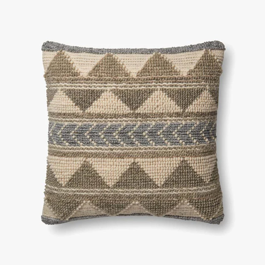 The blend of soft grey, greens and ivory blends into a modern aesthetic and works beautifully across various room styles. This pillow's textured fabric adds depth and interest, while maintaining a casual comfort. Ideal for layering, it brings a pop and cozy feel to sofas or beds, making it a perfect choice for creating a stylish and inviting atmosphere in any room.